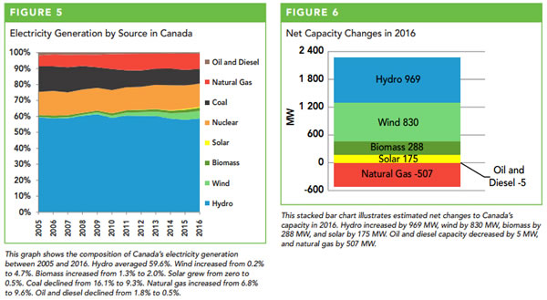 根據(jù)NEB的報(bào)告,2016年加拿大的可再生能源發(fā)電量為66%,非水電可再生能源占7.2%,水電占58.8%。