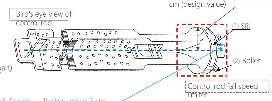下圖的紅色虛線部分即為發(fā)現(xiàn)的控制棒的底端部分,該部分起到下降速度控制作用。