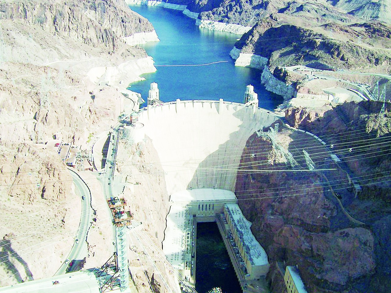 ▲圖為胡佛水壩,是美國綜合開發(fā)科羅拉多河水資源的一項(xiàng)關(guān)鍵工程,位于內(nèi)華達(dá)州和亞利桑那州交界之處的黑峽。
