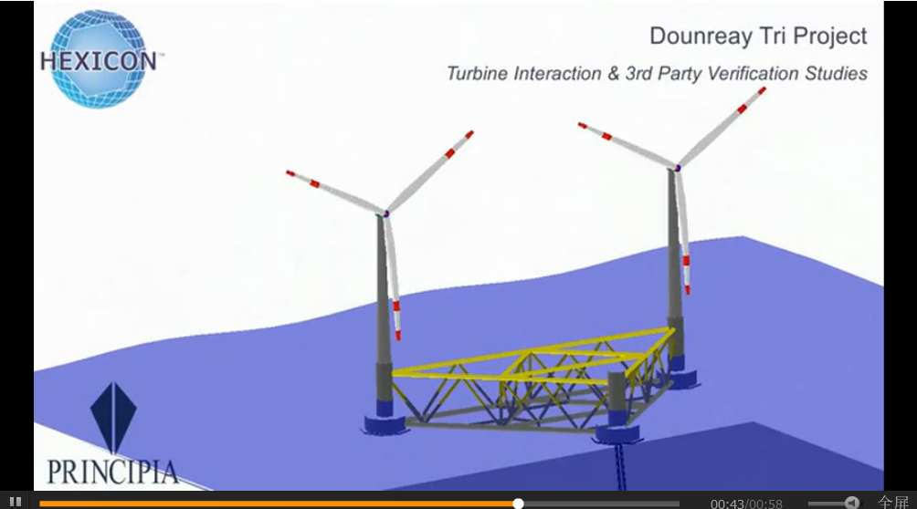 該風(fēng)機(jī)平臺(tái)將通過蘇格蘭Dounreay Tri海上風(fēng)場進(jìn)行試驗(yàn)。Dounreay Tri風(fēng)場位于蘇格蘭北部海域,離岸距離9.5km,水深超過100m。本次試驗(yàn)只安裝一個(gè)風(fēng)機(jī)平臺(tái),而試驗(yàn)所使用的風(fēng)機(jī),是2臺(tái)海裝H151-5MW。該項(xiàng)目預(yù)計(jì)于今年10月投產(chǎn)。