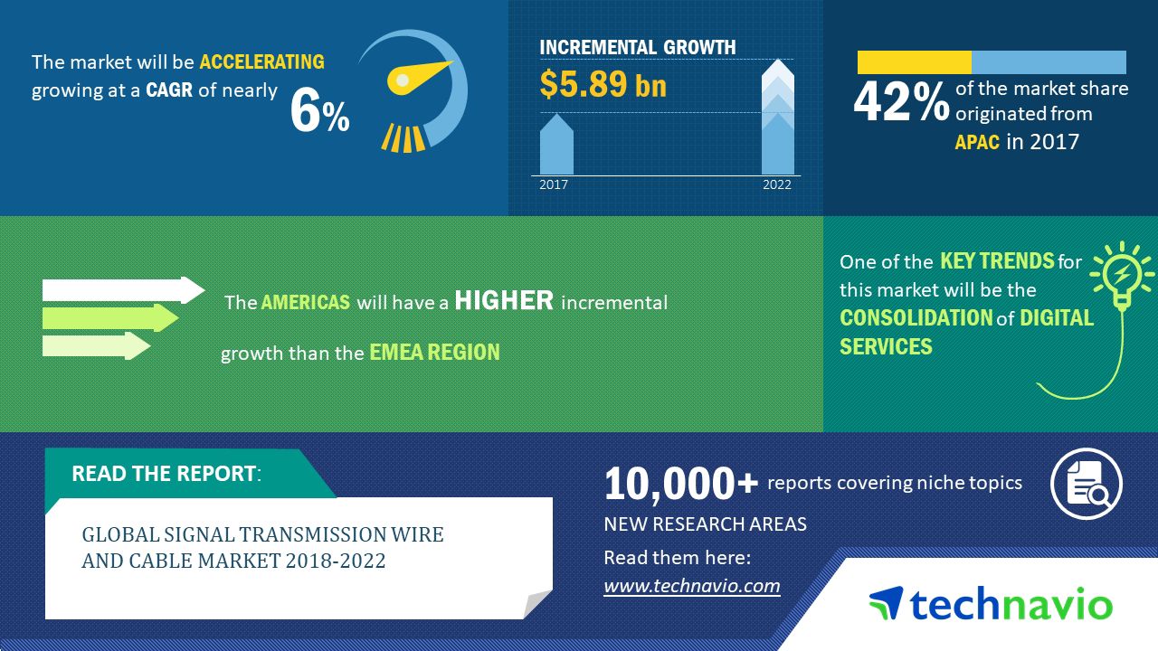 根據Technavio發(fā)布最新的市場研究報告,全球信號傳輸電纜市場預計在2018-2022年的復合年增長率接近6%。預計到2022年,全球信號傳輸電纜市場需求累計增長58.9億美元。