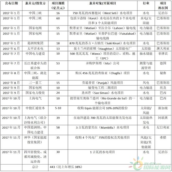 2017年中國在可再生能源、新能源、電網(wǎng)領(lǐng)域的主要投資項目