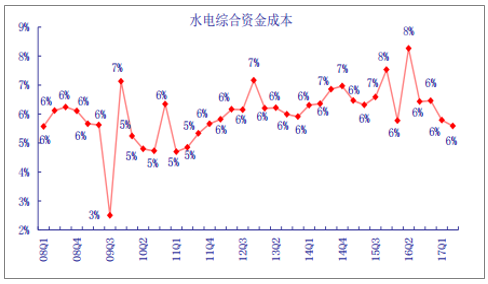 水電行業(yè)綜合資金成本分季度變化情況