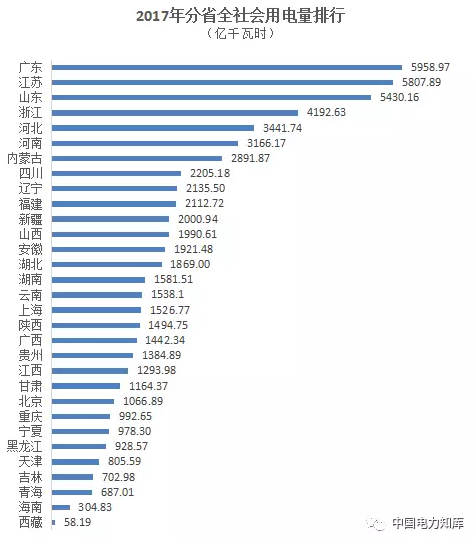 小編再以2017年全社會(huì)用電量排行前十的省份和地區(qū)為例,對(duì)各省的經(jīng)濟(jì)和電力運(yùn)行情況簡(jiǎn)要的對(duì)比、分析: