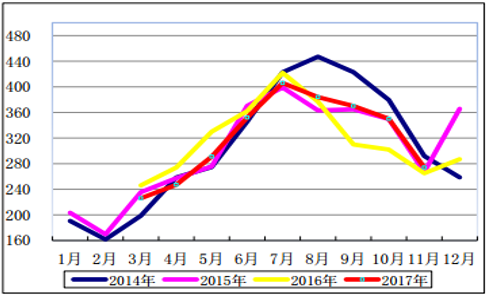 2017年11 月份,全國(guó)水電設(shè)備利用小時(shí) 274 小時(shí),同比增加 9 小時(shí)。1-11 月份, 全國(guó)水電設(shè)備平均利用小時(shí)為 3298 小時(shí),比上年同期降低 36 小時(shí)。在水電裝機(jī)容量超過(guò) 1000 萬(wàn)千瓦的 7 個(gè)省份中,除云南、湖北和青海同比分別增加 308、 262 和 146 小時(shí)外,其余省份水電設(shè)備平均利用小時(shí)同比均有不同程度降低,其中,湖南同比降低 356 小時(shí),貴州和廣西同比分別降低 160 和 113 小時(shí)。