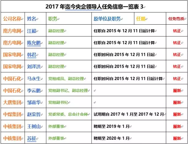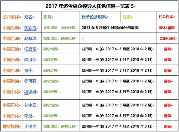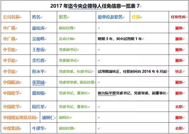 注:本文系能源新聞網(wǎng)據(jù)國務(wù)院國資委“人事任免”一欄公開信息及網(wǎng)上公開報(bào)道整理所得,起始時(shí)間為2017年2月迄今。