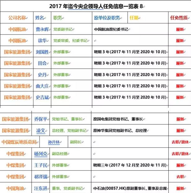 復(fù)盤2017年迄今能源央企人事調(diào)整