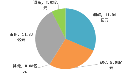 從電力輔助服務(wù)補償費用的結(jié)構(gòu)上看,調(diào)峰補償費用總額11.04億元,占總補償費用的31.37%;自動發(fā)電控制(以下簡稱AGC)補償費用總額9.64億元,占比27.41%;備用補償費用總額11.80億元,占比33.54%;調(diào)壓補償費用2.62億元,占比7.45%;其他補償費用0.08億元,占比0.23%(見圖2)。