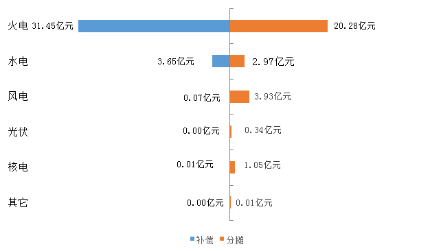 從能源類型的角度來看,電力輔助服務(wù)補償費用的補償與分攤費用對比如下。(見圖5)。