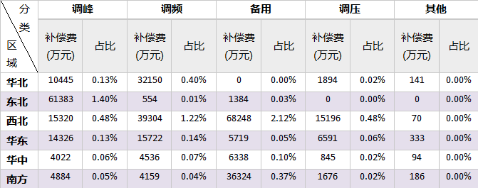 (一)各區(qū)域電力輔助服務(wù)補償費用情況