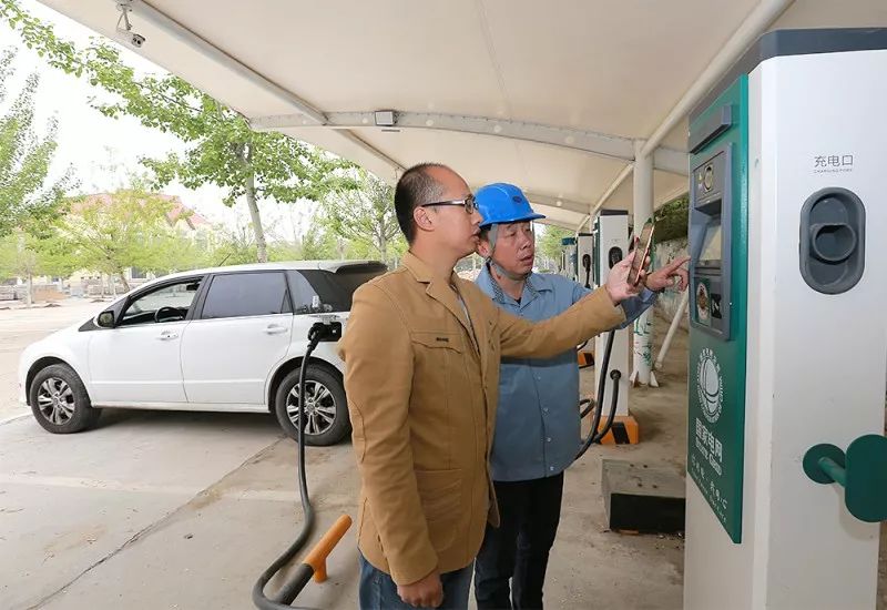 冀北秦皇島供電公司員工在北戴河聯(lián)峰山電動汽車充電站為客戶介紹“e充電”客戶端功能。(史文全)