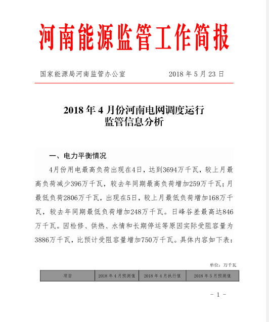 國家能源局河南監(jiān)管辦公室日前發(fā)布了《2018 年4月份河南電網調度運行監(jiān)管信息分析》,其中一、電力平衡情況:4月份用電最高負荷出現(xiàn)在4日...