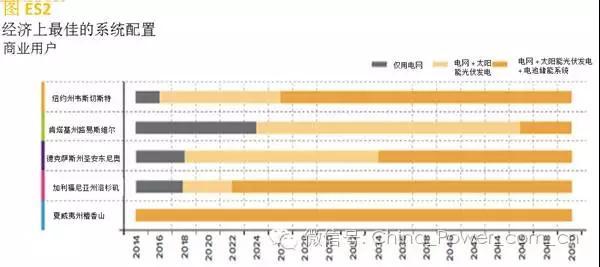 我們的分析有幾項(xiàng)重大發(fā)現(xiàn):太陽能發(fā)電+電池儲(chǔ)能系統(tǒng)能快速地實(shí)現(xiàn)成本效益。從用戶的角度看,經(jīng)濟(jì)性最優(yōu)的系統(tǒng)配置將隨著時(shí)間推移而產(chǎn)生變化,短期來看是僅依賴電網(wǎng)的模式,逐漸會(huì)發(fā)展成為電網(wǎng)+太陽能發(fā)電的模式,長期來看最優(yōu)的系統(tǒng)將是電網(wǎng)+太陽能發(fā)電+電池儲(chǔ)能系統(tǒng)模式。與我們在《脫離大電網(wǎng)的經(jīng)濟(jì)效益》報(bào)告中利用模型分析的無電網(wǎng)太陽能發(fā)電+電池儲(chǔ)能系統(tǒng)實(shí)現(xiàn)經(jīng)濟(jì)性平價(jià)的日期相比,本報(bào)告中的聯(lián)網(wǎng)系統(tǒng)實(shí)現(xiàn)經(jīng)濟(jì)效益的時(shí)間會(huì)提前很多,而且電力公司將在其主要資產(chǎn)的經(jīng)濟(jì)年限及成本回收期之內(nèi),損失大量用電負(fù)荷。僅依賴太陽能發(fā)電設(shè)施的系統(tǒng)容量較小,今天已經(jīng)在我們分析的五個(gè)地區(qū)中的三個(gè)地區(qū)實(shí)現(xiàn)了經(jīng)濟(jì)效益,十年之內(nèi)會(huì)在所有地區(qū)實(shí)現(xiàn)經(jīng)濟(jì)效益。新用戶將發(fā)現(xiàn),太陽能發(fā)電+電池儲(chǔ)能系統(tǒng)的配置在未來10至15年內(nèi)會(huì)在上述五個(gè)地區(qū)中的三個(gè)地區(qū)實(shí)現(xiàn)經(jīng)濟(jì)效益。
