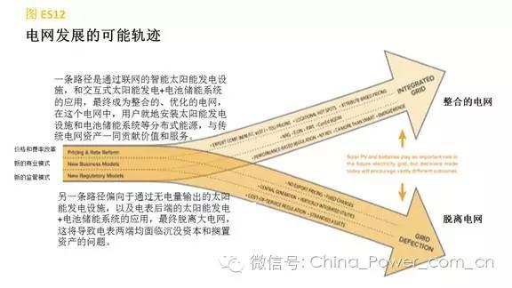 電力系統(tǒng)正處于發(fā)展道路上的一個(gè)交叉路口。一條路徑是有利于無電量輸出的太陽能發(fā)電設(shè)施以及太陽能發(fā)電+電池儲(chǔ)能系統(tǒng)的定價(jià)結(jié)構(gòu)、商業(yè)模式和監(jiān)管環(huán)境。當(dāng)經(jīng)濟(jì)條件和其它條件達(dá)到臨界點(diǎn)時(shí),這一軌跡的結(jié)果將會(huì)是大量用戶脫離大電網(wǎng)。與此同時(shí),隨著擱置電網(wǎng)資產(chǎn)服務(wù)的負(fù)荷將越來越少,電網(wǎng)供應(yīng)電價(jià)將面臨螺旋式上升,這會(huì)使得太陽能+儲(chǔ)能系統(tǒng)對用戶更具吸引力,從而導(dǎo)致剩余的聯(lián)網(wǎng)用戶的電價(jià)水平不可避免的進(jìn)一步升高,形成惡性循環(huán)。這些聯(lián)網(wǎng)用戶包括低收入和固定收入的用戶,他們將承擔(dān)因零售電力定價(jià)上漲而帶來的比例失調(diào)的負(fù)擔(dān)。在這一情景下,電網(wǎng)和用戶側(cè)資源都面臨過度建造但利用程度過低的問題,使得電表兩端的資金過剩。另一條路徑則會(huì)建立相應(yīng)的定價(jià)結(jié)構(gòu)、商業(yè)模式和監(jiān)管環(huán)境,使得太陽能發(fā)電設(shè)施和電池儲(chǔ)能系統(tǒng)等分布式能源,(及其內(nèi)在收益和成本)都被恰當(dāng)?shù)匾暈檎虾蟮碾娋W(wǎng)的有機(jī)組成部分。太陽能發(fā)電設(shè)施和電池儲(chǔ)能系統(tǒng)能潛在地降低整個(gè)系統(tǒng)的成本,同時(shí)對未來建立可靠的、彈性的、支付得起的低碳電網(wǎng)做出貢獻(xiàn),在這個(gè)電網(wǎng)系統(tǒng)里,用戶有權(quán)選擇。在這一情景下,電網(wǎng)和用戶側(cè)資源作為整合的電網(wǎng)的有機(jī)組成部分相輔相成,資金和實(shí)體資產(chǎn)的運(yùn)用效率更高。