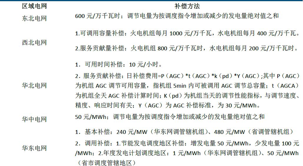 輔助服務(wù)補(bǔ)償機(jī)制的建立,有望加速儲(chǔ)能系統(tǒng)在火電調(diào)頻領(lǐng)域滲透。2016年6月,國(guó)家能源局發(fā)布了《關(guān)于促進(jìn)電儲(chǔ)能參與“三北”地區(qū)電力輔助服務(wù)補(bǔ)償(市場(chǎng))機(jī)制試點(diǎn)工作的通知》,確定了儲(chǔ)能參與調(diào)峰調(diào)頻輔助服務(wù)主體地位,提出在按效果補(bǔ)償原則下加快調(diào)整儲(chǔ)能參與調(diào)峰調(diào)頻輔助服務(wù)的計(jì)量公式,提高補(bǔ)償力度。在五部門(mén)印發(fā)《關(guān)于促進(jìn)儲(chǔ)能技術(shù)與產(chǎn)業(yè)發(fā)展的指導(dǎo)意見(jiàn)》中提到,要建立健全儲(chǔ)能參與輔助服務(wù)市場(chǎng)機(jī)制;參照火電廠提供輔助服務(wù)等相關(guān)政策和機(jī)制,允許儲(chǔ)能系統(tǒng)與機(jī)組聯(lián)合或作為獨(dú)立主體參與輔助服務(wù)交易;根據(jù)電力市場(chǎng)發(fā)展逐步優(yōu)化,在遵循自愿的交易原則基礎(chǔ)上,形成“按效果付費(fèi)、誰(shuí)受益誰(shuí)付費(fèi)”的市場(chǎng)機(jī)制。