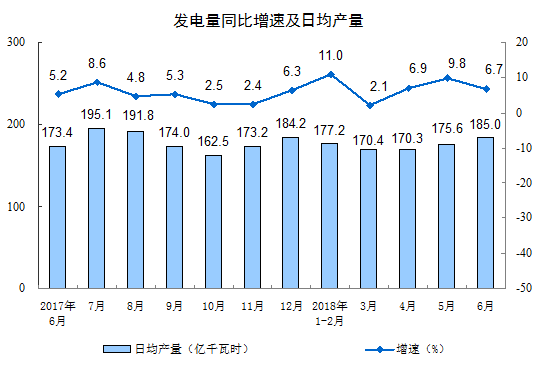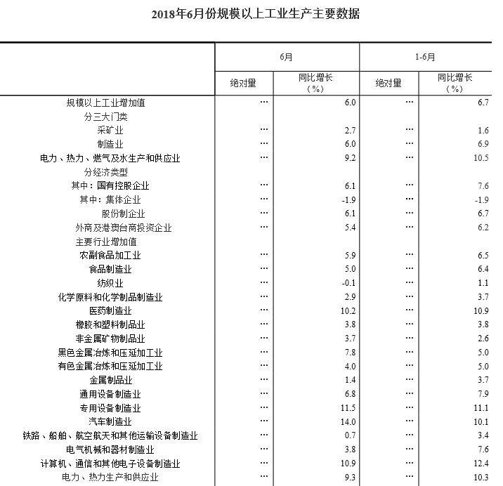 統(tǒng)計局:2018年6月份規(guī)模以上工業(yè)增加值增長6.0% 電力、熱力生產(chǎn)和供應業(yè)增長9.2%