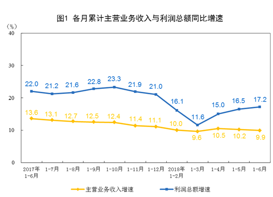 1-6月份,全國(guó)規(guī)模以上工業(yè)企業(yè)實(shí)現(xiàn)利潤(rùn)總額33882.1億元,同比增長(zhǎng)17.2%(按可比口徑計(jì)算,詳見(jiàn)附注二),增速比1-5月份加快0.7個(gè)百分點(diǎn)。
