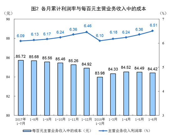 1-6月份,規(guī)模以上工業(yè)企業(yè)實(shí)現(xiàn)主營(yíng)業(yè)務(wù)收入52.1萬(wàn)億元,同比增長(zhǎng)9.9%;發(fā)生主營(yíng)業(yè)務(wù)成本44萬(wàn)億元,增長(zhǎng)9.5%;主營(yíng)業(yè)務(wù)收入利潤(rùn)率為6.51%,同比提高0.41個(gè)百分點(diǎn)。