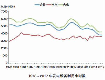 火電設(shè)備平均利用小時數(shù)總體呈下降趨勢。改革開放以來,我國火電發(fā)電設(shè)備平均利用小時數(shù)常年維持在5000小時以上,2004年之后,火電利用小時數(shù)呈波動下行趨勢,其原因一是火電裝機容量增速(11.3%)快于電力消費增速(8.5%),二是非化石能源發(fā)電量快速增長擠壓了火電空間。2017年全國6000千瓦及以上電廠發(fā)電設(shè)備平均利用小時數(shù)3786小時,為1964年以來新低,較2004年下降1669小時。其中火電4209小時,為1964年以來第二低(2016年為4186小時),較2004年下降1782小時。