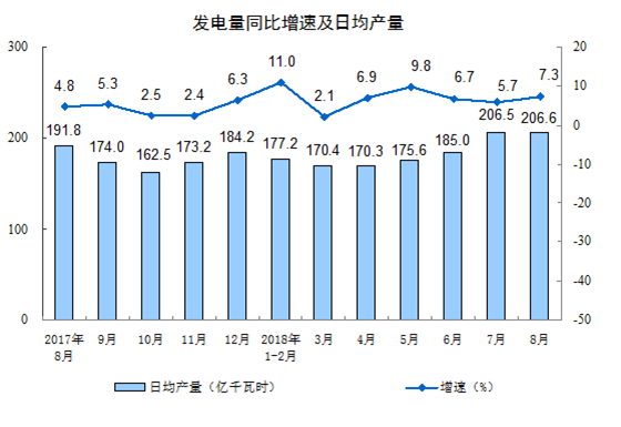 統(tǒng)計局:2018年8月份火力發(fā)電量4602 億千瓦時 同比增長6.0%
