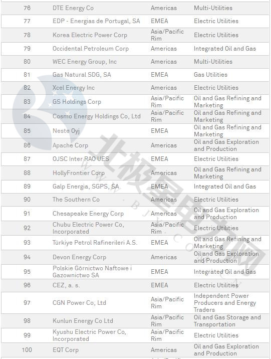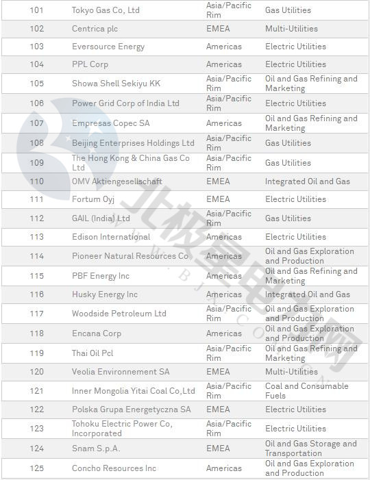 普氏2018年全球能源公司250強榜單出爐(附全名單)