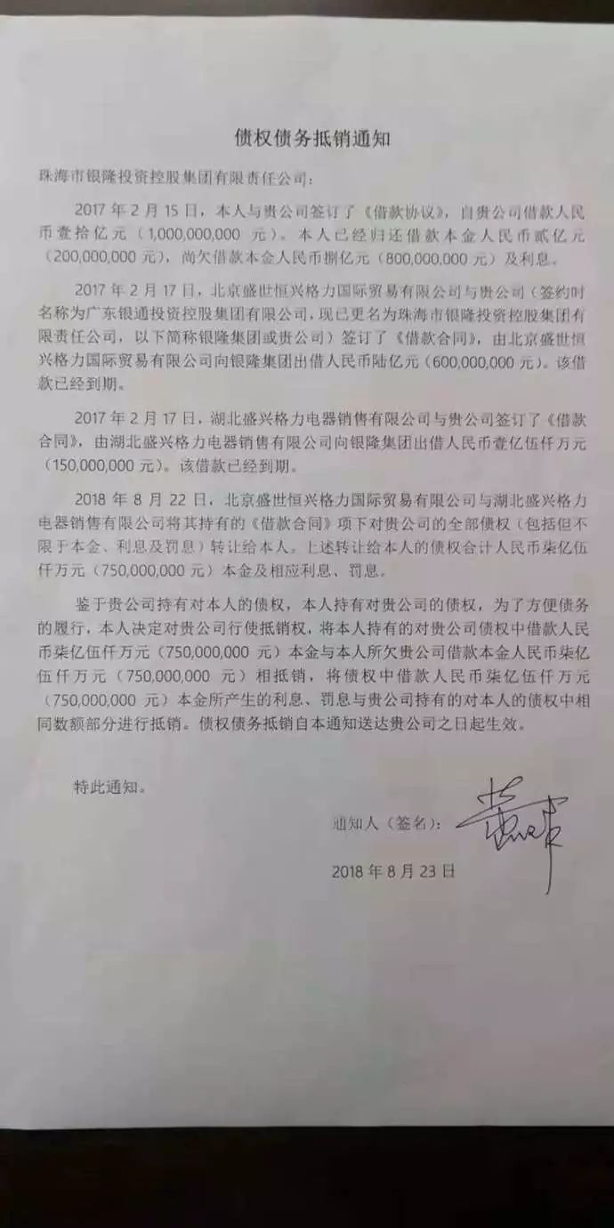 在孫國(guó)華看來,這是雙方矛盾公開化的導(dǎo)火索。在一份書面材料中,他寫到:“2018年8月,因董明珠未在約定的期限內(nèi)還清2.5億借款,而銀通投資為此對(duì)外所借款項(xiàng)也早已到期,銀通投資無奈之下,只能催促董明珠還款,董明珠因催促還錢,惱羞成怒,雙方的爭(zhēng)執(zhí)由此水火不容,董明珠遂操控銀隆新能源對(duì)大股東發(fā)難。”