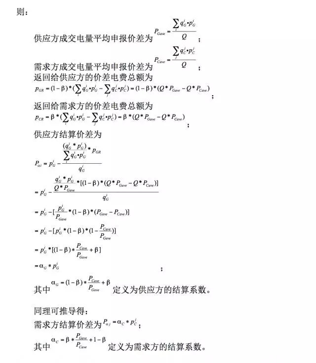表面看,價(jià)差電費(fèi)返還出清機(jī)制十分復(fù)雜,實(shí)際上,供應(yīng)方和需求方的最終結(jié)算價(jià)差都只不過(guò)是申報(bào)價(jià)差乘以一個(gè)系數(shù)(本文稱為結(jié)算系數(shù))。下面從數(shù)學(xué)上嚴(yán)格證明: