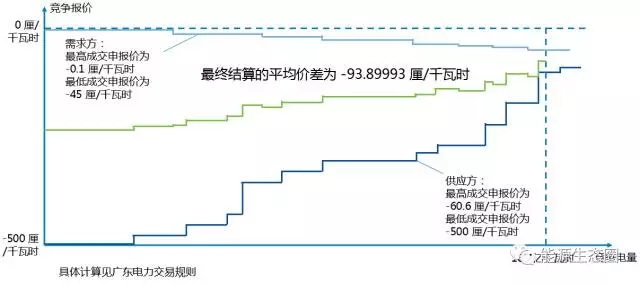 這是最常見的模式,其成交價(jià)格并不取決于單個(gè)用戶價(jià)格,而是取決于需求方最低報(bào)價(jià)和供給方最高報(bào)價(jià)之間的價(jià)差。這種方式并沒有太多的策略,如果保證成交,售電公司只需報(bào)零價(jià)差即可。
