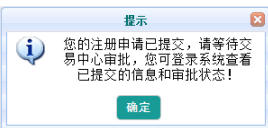 之后,注冊信息將發(fā)送至交易中心進(jìn)行審批。如下圖所示: