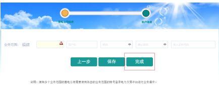 注冊及賬號相關(guān)信息填寫完畢保存后,用戶點擊“完成”。如下圖所示: