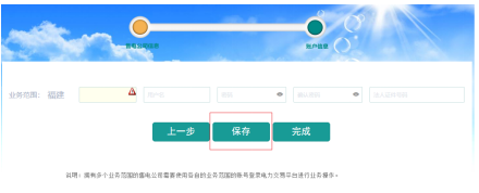 用戶填寫賬號信息,包括登錄名、用戶名、密碼、法人證件號碼(身份證),填寫完畢后點擊“保存”,如下圖所示。