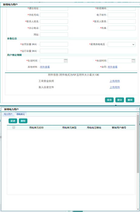 點(diǎn)擊待提交和被駁回的電力用戶,可以修改其綁定期限。新增的用戶可以修改用戶基本信息和用電單元信息。點(diǎn)擊【撤銷】可以取消此綁定申請(qǐng),如果是綁定已有的用戶則此申請(qǐng)取消,如果是新增的用戶,撤銷時(shí)將同時(shí)將新增的用戶也刪除。如下圖所示: