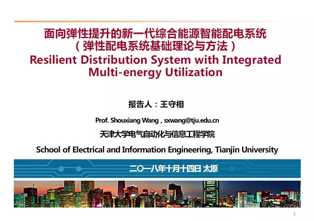 會(huì)上,天津大學(xué) 王守相 教授作了題為“面向彈性提升的新一代綜合能源智能配電系統(tǒng)”的精彩報(bào)告。小編征得王教授同意,與您分享。