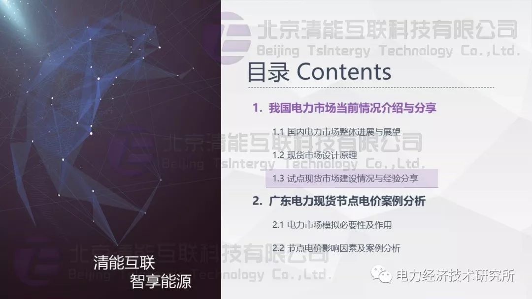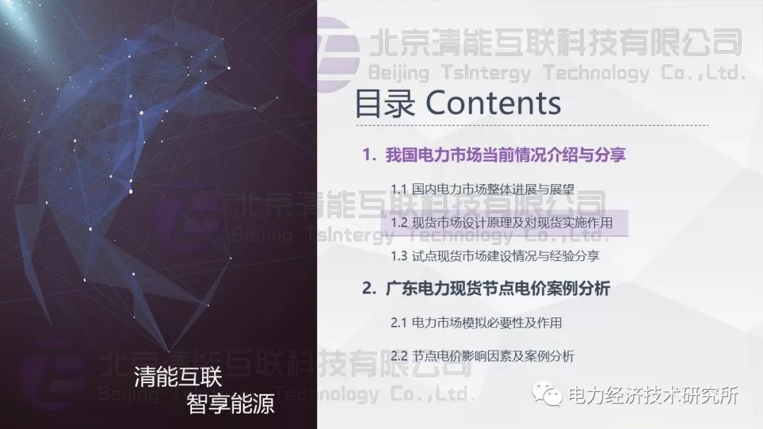 報告主要介紹了我國電力市場當(dāng)前情況,包括國內(nèi)電力市場整體進(jìn)展與展望、現(xiàn)貨市場設(shè)計原理及對現(xiàn)貨實施作用和試點現(xiàn)貨市場建設(shè)情況;其次對廣東電力現(xiàn)貨節(jié)點電價進(jìn)行案例分析,包括電力市場模擬必要性及作用和節(jié)點電價影響因素及案例分析。