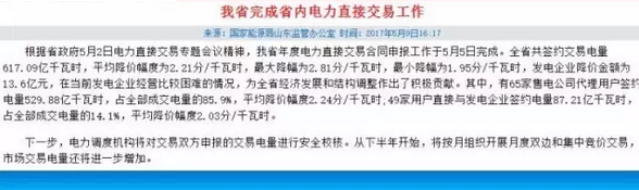 5月9日臨近下班時(shí)間,國家能源局山東監(jiān)管辦發(fā)布了5月5日結(jié)束申報(bào)的山東年度交易的結(jié)果: