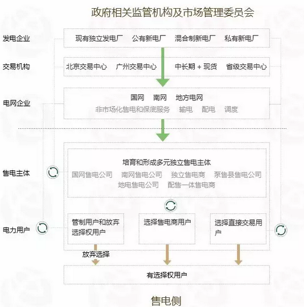 售電側(cè)改革之后,電力市場引入了批發(fā)競爭的結(jié)構(gòu)。在這種市場結(jié)構(gòu)下,輸電網(wǎng)必須向所有市場成員開放,配電公司和大用戶可以選擇發(fā)電商,發(fā)電商也可以把電賣給不同的配電公司或大用戶,而不是單一的買單機(jī)構(gòu)。