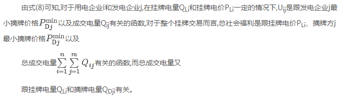 上述分析表明,發(fā)電企業(yè)的每一個(gè)摘牌價(jià)格與其最低摘牌價(jià)格的價(jià)差可視為單位成交電量社會(huì)福利的系數(shù),該系數(shù)越大,單位成交電量產(chǎn)生的社會(huì)福利越大,因此,發(fā)電企業(yè)在價(jià)格接受范圍內(nèi)盡可能多摘牌,可創(chuàng)造更多的社會(huì)福利。