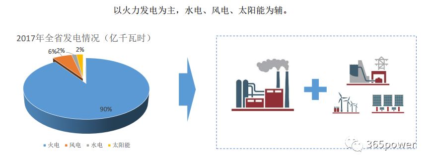 山西省發(fā)電以火力發(fā)電為主,水電、風(fēng)電、太陽(yáng)能為輔。截止2017年12月,全省火力裝機(jī)容量達(dá)6366.49萬(wàn)千瓦,占全省裝機(jī)總量的79%,2017年全年全省發(fā)電量2765.53億千瓦時(shí),值得注意的是,其中太陽(yáng)能發(fā)電55.51億千瓦時(shí), 同比增長(zhǎng)104.37%,新能源發(fā)電正在飛速發(fā)展。