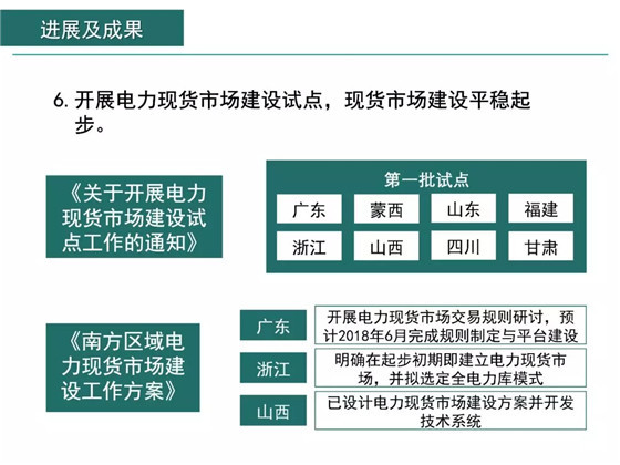 本輪電力市場改革已取得了進展和成效,交易機構(gòu)組建工作基本完成,為電力市場化交易搭建了公平規(guī)范的交易平臺,輸配電價改革實現(xiàn)體系性全覆...