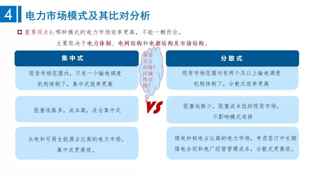 集中式和分散式哪種模式的電力市場效率更高,不能一概而論,主要取決于電力體制、電網(wǎng)結構和電源結構及市場結構