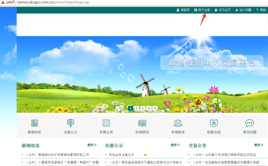 ,山東電力交易中心日前公布了售電公司自主注冊操作手冊,售電公司可自主進行注冊,具體操作流程如下:一、自主注冊流程(一) 進入注冊頁面在瀏覽器中訪問 http: pmos sd sgcc com cn ,點擊右上角【用戶注冊】