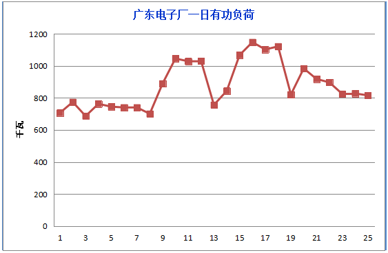 下面是廣東惠州某個電子廠2015年9月8日每小時的負(fù)荷曲線,很明顯,細(xì)化到每小時候的負(fù)荷波動就大多了。