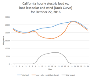 現(xiàn)貨市場說白了就是管控負(fù)荷曲線,這個對于發(fā)電企業(yè)以及它的售電來說很容易。因?yàn)檫^去包括現(xiàn)在他們一直都在做,不過他的交易對手是電網(wǎng)而已。售電公司恐怕還需要好好惡補(bǔ)下課。下圖是美國加州2016年10月22日的每小時負(fù)荷圖。
