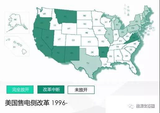 1、售電側放開之全球進度說到售電側,其實并不是每個國家的每個省份售電側都已經(jīng)非常開放的,包括美國、澳洲、歐洲等國家在內(nèi)也不例外。美國作為經(jīng)濟自由化的國家,在1996年就開始了售電側改革,但是在2002-2003