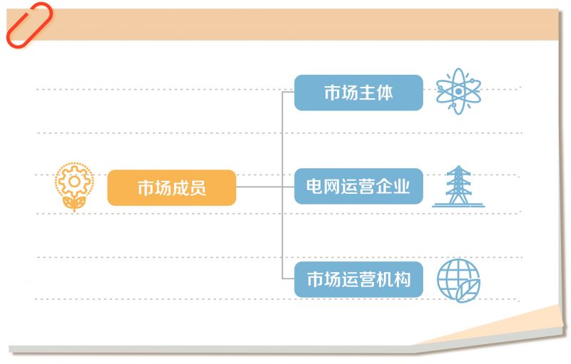 電力市場的參與者和利益有關(guān)方。市場成員包括市場主體、電網(wǎng)運營企業(yè)和市場運營機構(gòu)三類。