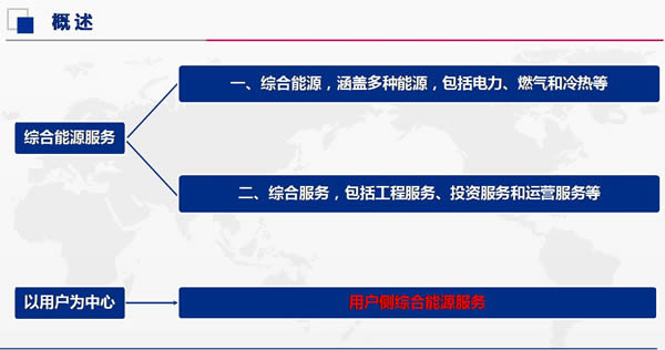 綜合能源服務(wù)包含綜合能源及綜合服務(wù)兩方面,其中綜合能源涵蓋多種能源,包括電力、燃?xì)夂屠錈岬?。綜合服務(wù),包括工程服務(wù)、投資服務(wù)和運(yùn)營