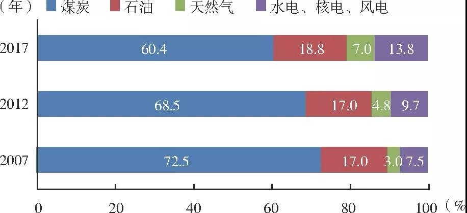 圖3 2007—2017年我國一次能源消費結(jié)構(gòu)變化