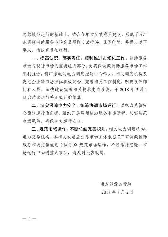 國家能源局南方監(jiān)管局日前印發(fā)了《廣東調(diào)頻輔助服務(wù)市場交易規(guī)則(試行)》的通知,將于2018年9月1日正式執(zhí)行。