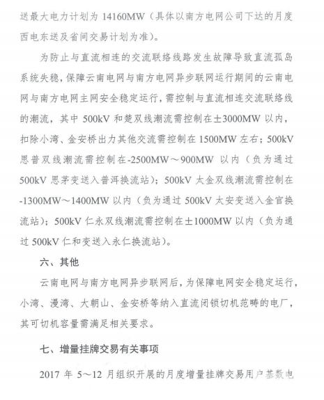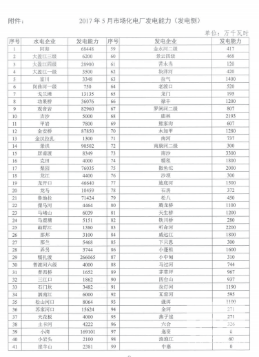 云南2017年5月電力市場(chǎng)化交易信息披露