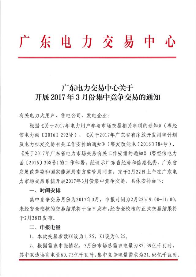 廣東省電力交易中心剛剛發(fā)布關(guān)于2月22日早上9:00-11:00開展2017年三月份集中競價(jià)交易的通知,我們來劃劃重點(diǎn)吧: